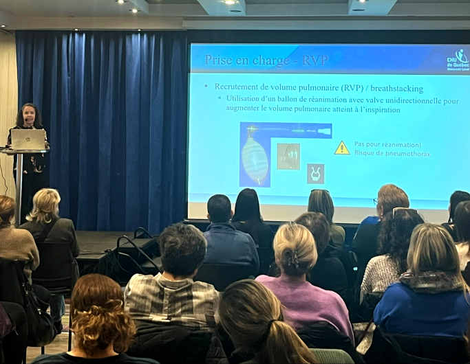 En après-midi, c’est la « Prise en charge respiratoire des maladies neuro-musculaires », présentée par la Dre Marie-Ève Bédard, pneumologue au CHU de Québec-Université Laval, qui a retenu l’attention des participants.