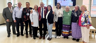 Photo principale : L’inauguration du Centre de sécurisation culturelle s’est déroulée le 23 mai dernier. De gauche à droite : Sylvain Lévesque, député de Chauveau et représentant du Ministre Lafrenière pour l’occasion, René W. Picard, chef Wendat, Jean-Charles Piétacho, chef d’Ekuanitshit (Mingan), Aline Rock, conjointe de Paul-Arthur Mckenzie, Paul-Arthur Mckenzie, célébrant et grand sage de la communauté innue, Danielle Goulet, présidente directrice générale adjointe du CHU de Québec-Université Laval, Michèle Audette, sénatrice, Pénéloppe Guay et Nathalie Guay, directrices de la maison communautaire Missinak et Mitshuap nish, Michèle Ricard, directrice de la Direction de la qualité, de l’évaluation et de l’éthique du CHU de Québec-Université Laval.