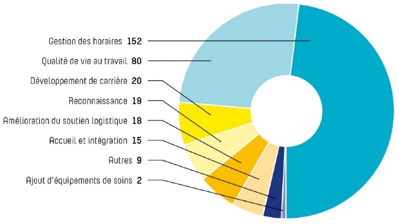 À la suite de la réception de ces idées, l’organisation s’est mise en action. Le 2 octobre 2019, il y a eu un grand rassemblement de 135 ambassadeurs représentants les infirmières, infirmières auxiliaires et les préposés aux bénéficiaires (PAB), accompagnés de chefs d’unité, de membres de la direction, du Conseil des infirmières et infirmiers (CII) ainsi que des syndicats SICHU et SST du CHU. Lors de ce grand rendez-vous, des initiatives visant à améliorer la qualité de vie au travail et à répondre aux difficultés vécues par les équipes de soins ont été priorisées.