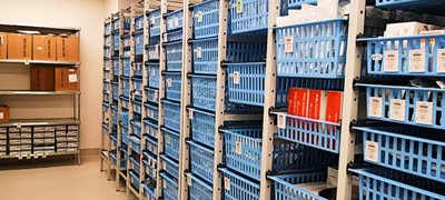 Cette étape, bien que courte en distance, est énergivore et chronophage. Au CHU, elle concerne la gestion des réserves primaires (doubles casiers) et secondaires (réserves au point d’utilisation), autrefois assurée par le personnel clinique.