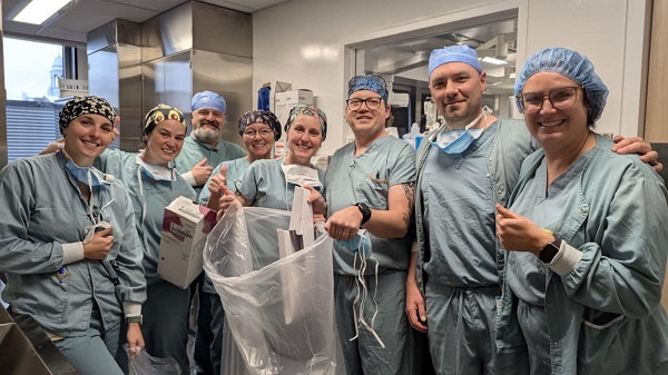 Inspiré par ce qu’il a vu dans d’autres hôpitaux et entendu dans les comités de développement durable, que ce soit au CHU ou ailleurs dans la province, le Dr Joshua Fortin, anesthésiste, a voulu faire sa part pour réduire les grandes quantités de déchets qui prenaient le chemin de la poubelle au bloc opératoire de l’Hôpital de l’Enfant-Jésus.
