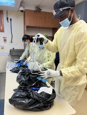 À la fin de l’été, l’équipe multidisciplinaire (composée de gens spécialisés en comptabilité, génie de l’environnement, économie circulaire…) avait caractérisé plus de 1 300 articles consommés dans les deux unités de soins (ce qui représente 97 % du volume total des articles utilisés) ainsi que 100 % des déchets générés. Le rapport final de la première phase du projet a été remis au MELCCFP et au MSSS en septembre.