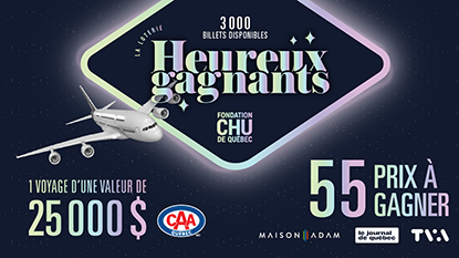 Procurez-vous votre billet dès maintenant et soutenez la santé des gens d’ici.La Fondation du CHU de Québec est fière de lancer officiellement l’édition 2026 de sa loterie philanthropique Heureux gagnants. Procurez-vous votre billet...