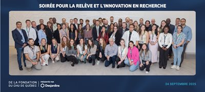 La Fondation du CHU de Québec a organisé avec succès la Soirée pour la relève et l’innovation en recherche, présentée par Desjardins, le 24 septembre 2025. Cet événement cocktail a mis à l’honneur les avancées remarquables et l’excellence de la recherche au Centre de recherche du CHU de Québec-Université Laval (CHU).