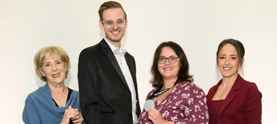 Photo principale : Mme Francine Champoux, présidente des Prix Hippocrate; M. Joseph Aubut, directeur général de Leomed; Mme Julie Maranda, adjointe à la directrice chirurgie et périopératoire au CHU, Mme Marie-Frédérique Fournier, directrice chirurgie et périopératoire au CHU.