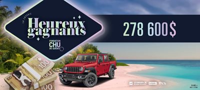 Dans le cadre de la loterie philanthropique Heureux gagnants 2025, la Fondation du CHU de Québec est fière d’annoncer la récolte d’un montant net de 278 600 $ destiné à soutenir des projets structurants au CHU de Québec-Université Laval.