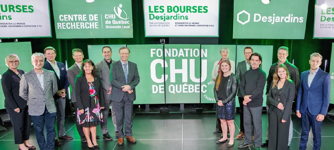 La Fondation du CHU de Québec, son partenaire Desjardins et le Centre de recherche du CHU de Québec-Université Laval (CRCHU) ont souligné l’excellence de la relève en recherche dans le cadre de la remise des Bourses de formation Desjardins pour la recherche et l’innovation le 26 octobre 2022.