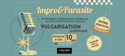 Ainsi, le 8 juin prochain, vous êtes invités à Impro & Parasito, un évènement unique où improvisateurs, improvisatrices et scientifiques s’allieront pour vous faire rire et découvrir le monde fascinant des parasites!