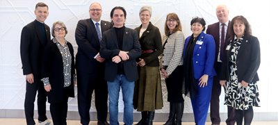Photo principale : Inauguration du nouveau centre de recherche du CHU de Québec-Université Laval, le 28 mars 2025. De gauche à droite : Bruno Marchand, maire de Québec; Diane Jean, présidente du conseil d’administration d’établissement du CHU (par intérim); Martin Beaumont, PDG du CHU de Québec-Université Laval, Serge Rivest, directeur du Centre de recherche du CHU de Québec-Université Laval, Sophie D’Amours, rectrice de l’Université Laval, Chantal Pilon, présidente et cheffe de la direction de la Fondation du CHU de Québec, Christine Mimeault, directrice générale adjointe, projets majeurs, stratégies numériques et excellence opérationnelle du CHU de Québec-Université Laval, Robert Topping, directeur général du bureau de projet du nouveau complexe hospitalier pour la Société québécoise des infrastructures, Danielle Goulet, présidente-directrice générale adjointe du CHU de Québec-Université Laval.