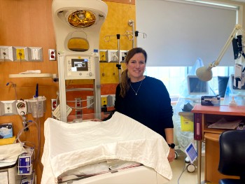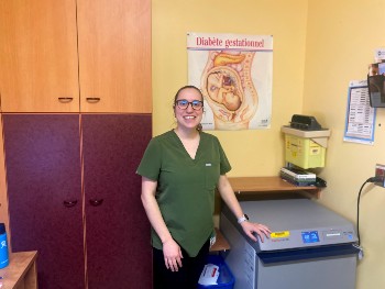 Rosianne est infirmière clinicienne au service de consultations externes en périnatalité pour le diabète gestationnel. Sa collègue Laurie-Anne l’a nommée pour son engagement et son savoir-faire.