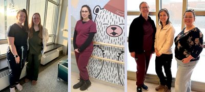 Photo de droite : Nancy Chamberland et Alexandra Rousseau, Unité néonatale, Sabrina Bergeron, Obstétrique, CHUL.
