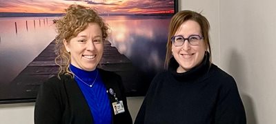 Photo principale : Dominique Guérard, cheffe d’unité de médecine au CHUL (à gauche) et Isabelle Marcoux, coordonnatrice en prélèvement et développement des tissus humains, Héma-Québec (à droite).