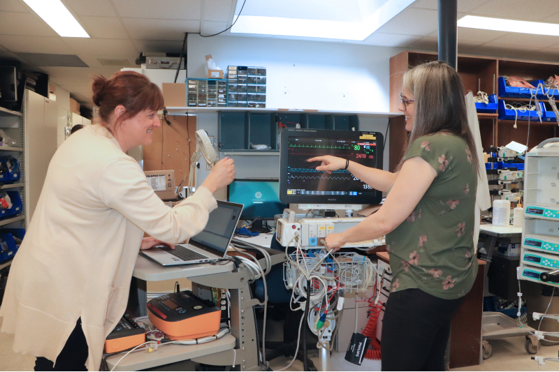 Valérie : « Comme Michèle l’a mentionné, je prends le relais une fois l’équipement livré. Je procède à sa mise en service, à son entretien préventif régulier et à ses réparations éventuelles. Je travaille également en collaboration avec les équipes cliniques en les soutenant dans l’utilisation des équipements et en demeurant attentive à leurs besoins techniques. Lorsque les appareils arrivent en fin de vie utile, je participe au processus de remplacement en coordination avec l’équipe d’ingénierie et le personnel des unités de soins. »