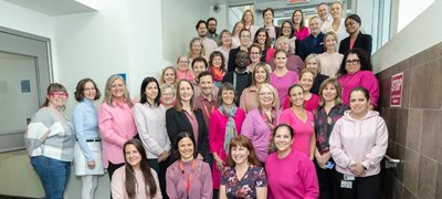 Photo : une partie de l’équipe du Centre des maladies du sein (CMS) du CHU de Québec-Université Laval lors de la Journée rose 2025.