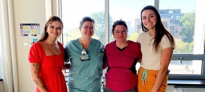 Photo principale : de gauche à droite : Claudie Julien, candidate à l'exercice de la profession infirmière (CEPI); Marie-Pier Laforge, infirmière clinicienne; Karine Droval, infirmière; Anne-Julie Vatcher, infirmière clinicienne.
