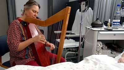 De plus, la harpe n’agit pas que sur les patients, elle offre la même qualité d’amélioration chez les proches, les visiteurs ou les soignants qui les entourent. D’une manière générale, on voit clairement que la paix et la positivité s’installent dans son rayonnement. L’intimité devient tendresse joyeuse. Les patients manifestent leur dignité, leur joie, leur amour. On ne guérit bien sûr pas les pathologies lourdes, mais on bonifie certainement le vécu. Il est dès lors souvent possible de réduire la médication (antidouleurs et anxiolytiques) ou diminuer la présence des machines. La harpéopathie s’adresse à tous, mais trouve particulièrement sa place dans l’accompagnement palliatif.