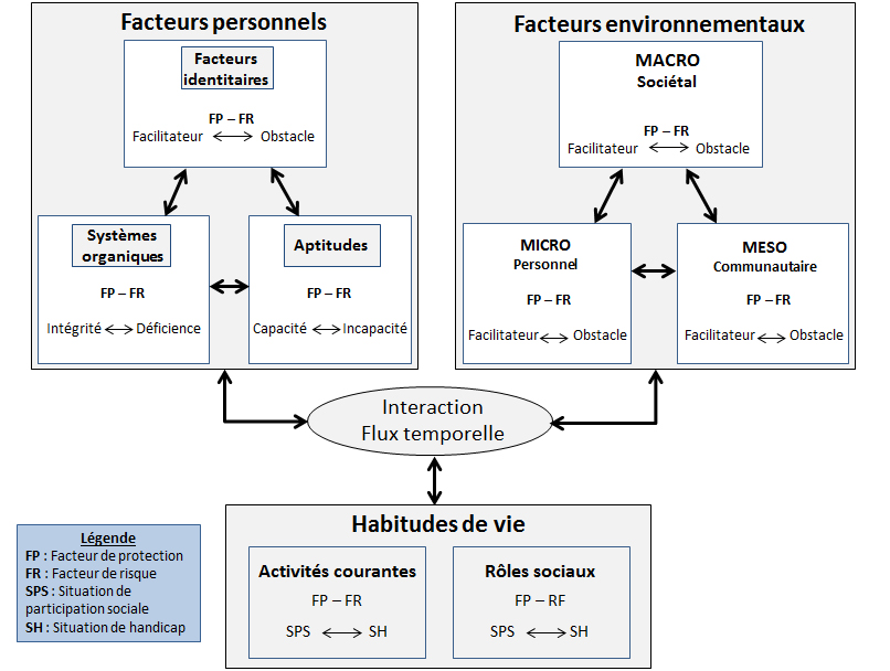 Paru en 2010 dans le livre de Patrick Fougeyrollas, La funambule, le fil et la toile : Transformations réciproques du sens du handicap, le MDH-PPH représente une version bonifiée du schéma conceptuel du PPH de 1998. Ce modèle distingue trois grandes dimensions présentes pour tout être humain (facteurs personnels, facteurs environnementaux et habitudes de vie), illustrées à la figure 1.
