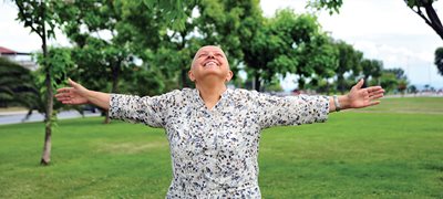 « Le cancer est un cadeau mal emballé dans lequel il peut y avoir des belles choses. Je vis une belle période de ma vie malgré le cancer. Je suis portée par une vague d’amour venant de ma famille et de mes amis qui me donnent du courage. Il y a de beaux moments, je suis encore heureuse. Je n’ose presque pas dire ça, on va croire que je suis tombée sur la tête. »