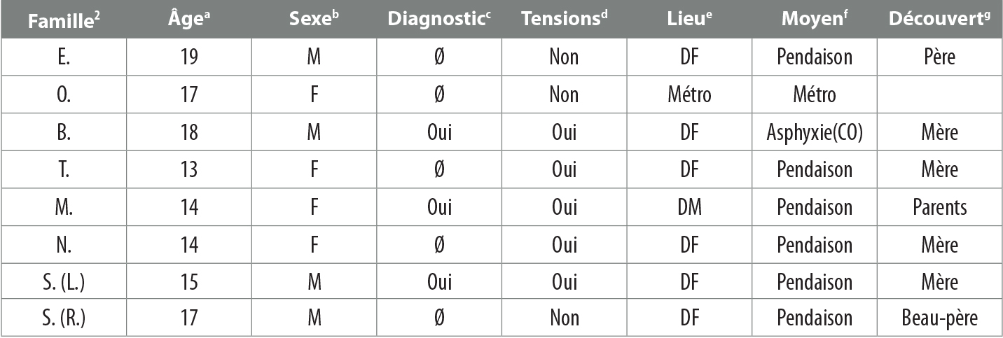 Tableau 1 : Description succincte des adolescents et de leur suicide