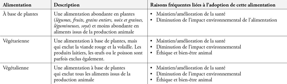 Tableau 1. Différents degrés d’une alimentation à base de plantes