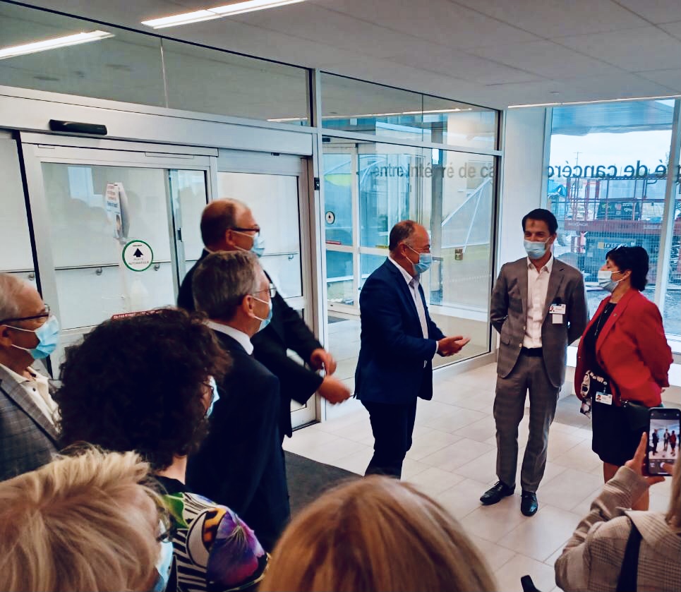 Le mercredi 6 juillet dernier, le ministre de la Santé et des Services sociaux, M. Christian Dubé, a pris le temps de rencontrer nos patients, employés et médecins du nouveau bâtiment du Centre intégré de cancérologie (CIC) du CHU de Québec-Université Laval.
