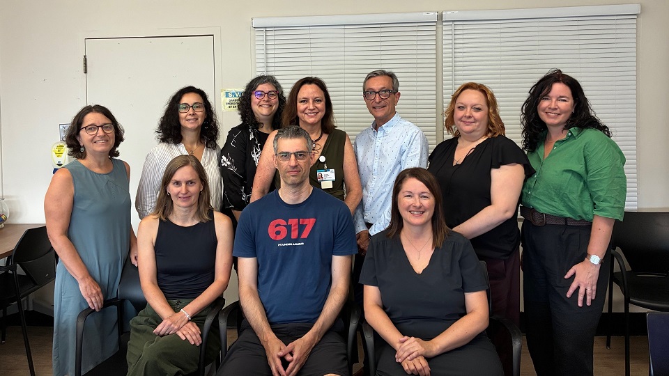 Photo : À l’avant, de gauche à droite : Dre Alice Nourissat, médecin conseil; Martin Bussières et Geneviève Asselin, agents de planification, de programmation et de recherche (APPR). À l’arrière, de gauche à droite : Brigitte Larocque et Sylvine Carrondo Cottin, APPR; Dre Marie-Claude Letellier, médecin conseil; Isabelle Jacques, adjointe à la directrice – module Évaluation et éthique, Direction de la qualité, de l’évaluation et de l’éthique; Dr Marc Rhainds, cogestionnaire médical et scientifique de l’Unité d’évaluation des technologies et des modes d’intervention en santé (UETMIS); Nancy Roger, agente administrative; Renée Drolet, APPR.