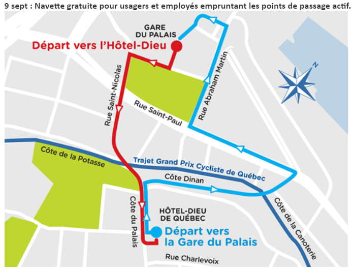 Un arrêt temporaire sera aménagé face à la Gare du Palais et à l'entrée principale de l'Hôtel-Dieu;