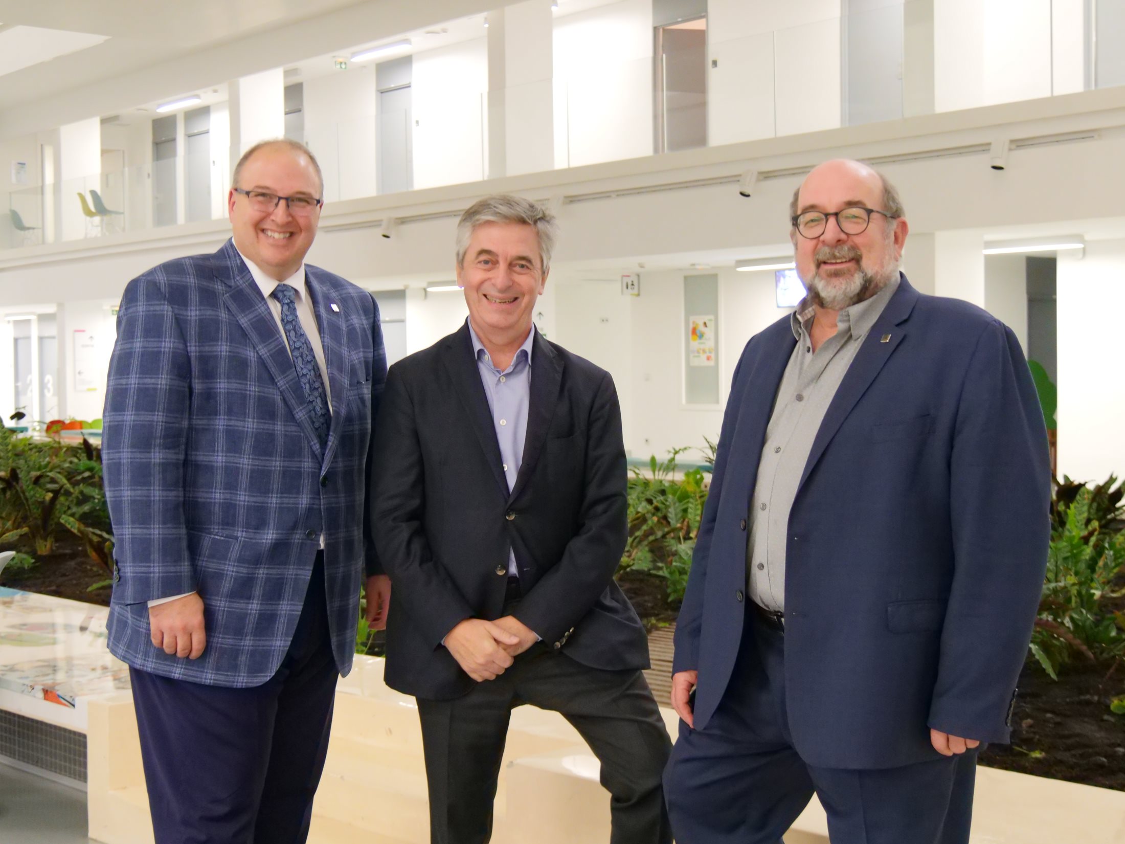 (Sur la photo, de gauche à droite : Martin Beaumont, PDG, CHU de Québec-Université Laval - Pr Stanislas Lyonnet, Directeur de l’Institut Imagine - Daniel La Roche Directeur de la qualité, de l'évaluation, de l'éthique et des affaires institutionnelles, CHU de Québec-Université Laval)