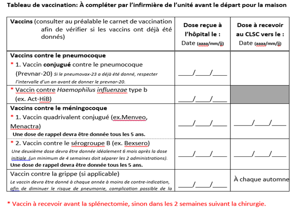 Portez un bracelet du type Médic-Alert avec la mention «splénectomisé».
