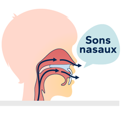 Lorsque le voile du palais est ouvert, l’air est dirigé vers le nez pour produire les sons nasaux. Cette position permet de produire les consonnes « m, n, gn » et les voyelles « in, an, on, un ».