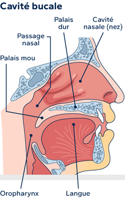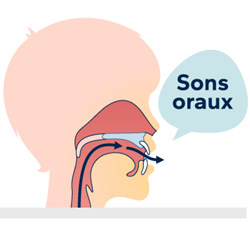 Lorsque le voile du palais est fermé, l’air est dirigé vers la bouche pour produire les sons oraux. Cette position permet de produire tous les autres sons (par exemple : les consonnes « p, b, t, d, f, s, etc. » et les voyelles « i, ou, o, e, a, etc. ». Les sons oraux représentent la majorité des sons en français.