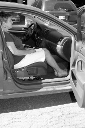 Faites reculer le siège et inclinez le dossier vers l’arrière avant de vous asseoir. Placez un coussin sur le siège s’il est trop bas et un sac de plastique au besoin pour faciliter le glissement.