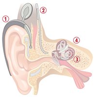 English L’implant cochléaire est composé d’une partie interne et d’une partie externe. La partie interne est insérée sous la peau derrière l’oreille lors d’une chirurgie qui nécessite une anesthésie générale. La partie externe est constituée du processeur vocal qui est relié à l’antenne. L’antenne est munie d’un aimant qui permet de la maintenir vis-à-vis la partie interne, afin que le contact puisse s'établir.