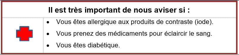 Si vous êtes allergique aux produits de contraste iodé : voir prescription du médecin