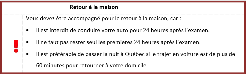 - Une collation (non fournie par l’hôpital, vous devez manger avant d’avoir congé).