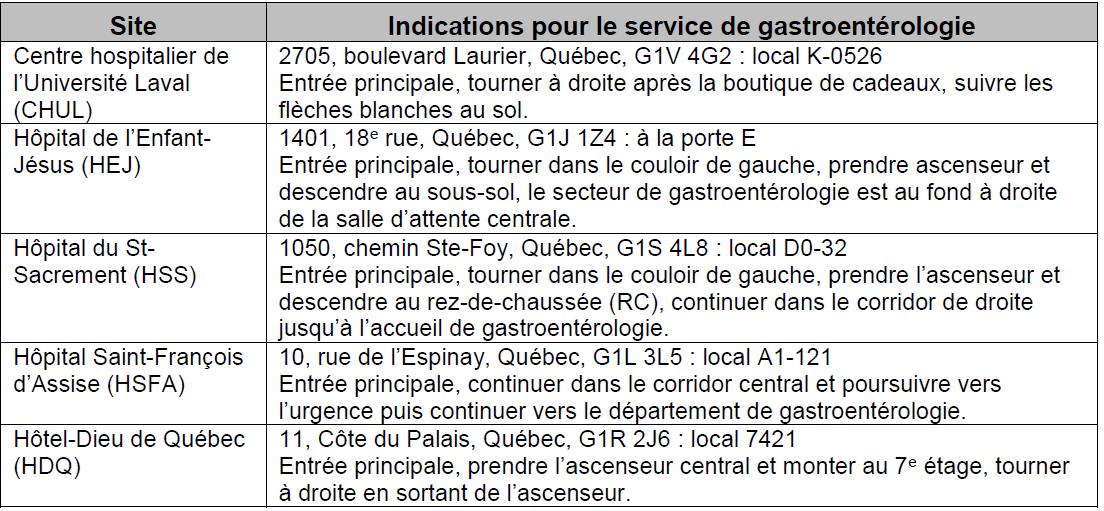 Vous présentez au service de gastroentérologie du site où vous avez rendez-vous :