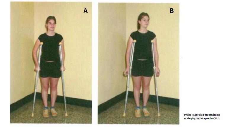 L’ajustement des béquilles se fait debout en se tenant droit, les pieds légèrement écartés.