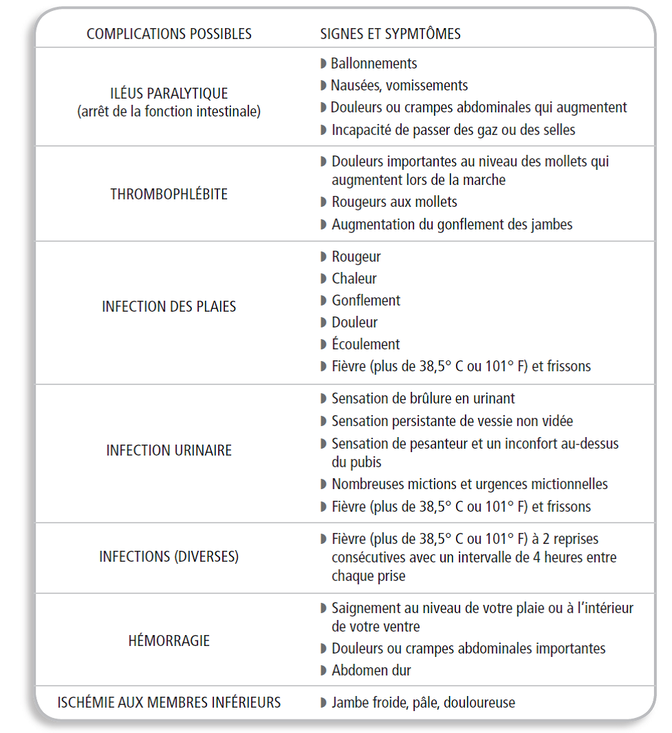 Quelles complications peuvent arriver après votre chirurgie ?