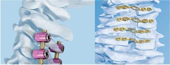 La décompression cervicale consiste à retirer les tissus ou les fragments osseux qui font pression sur la moelle pour ainsi la dégager. Afin d’optimiser la stabilité, il y a mise en place de tiges et de vis.