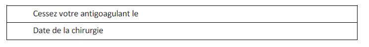 Aspirine ou anticoagulant à cesser selon la recommandation du chirurgien.