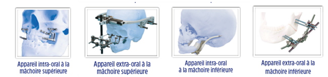 Selon la situation, les types d’appareils de distraction osseuse utilisés sont intraoraux ou extraoraux. Une chirurgie d’avancement du maxillaire supérieur peut être effectuée si la mâchoire supérieure est trop reculée par rapport à celle du bas.