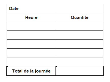 Notez la quantité de liquide du contenant gradué dans les « notes personnelles » (page 9). Apportez ces informations à votre prochaine visite médicale.