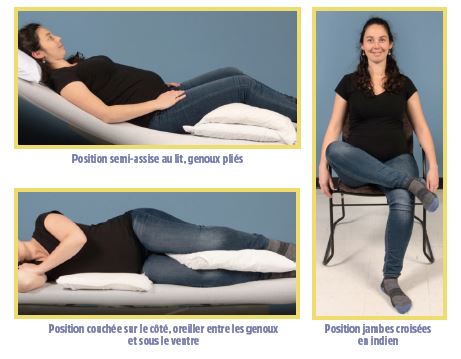 Il est plus facile de commencer les exercices du plancher pelvien dans la position couchée. Ceci facilite la contraction des muscles. Ensuite, vous pourrez faire les exercices en position assise et finalement debout. Il est normal de prendre 4 à 6 semaines avant d’être capable de changer de position.