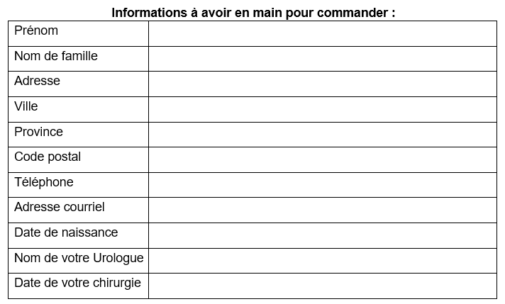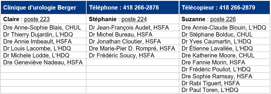 Veuillez contacter la secrétaire de l’urologue ayant effectué la chirurgie à la Clinique d’urologie Berger sur les heures ouvrables en semaine.