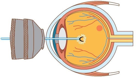 • Une goutte vous sera administrée pour geler votre œil. Une injection anesthésiante sous la conjonctive peut aussi être effectuée. Le traitement peut être inconfortable et dure environ 5 minutes. Le traitement pourrait être répété au besoin.