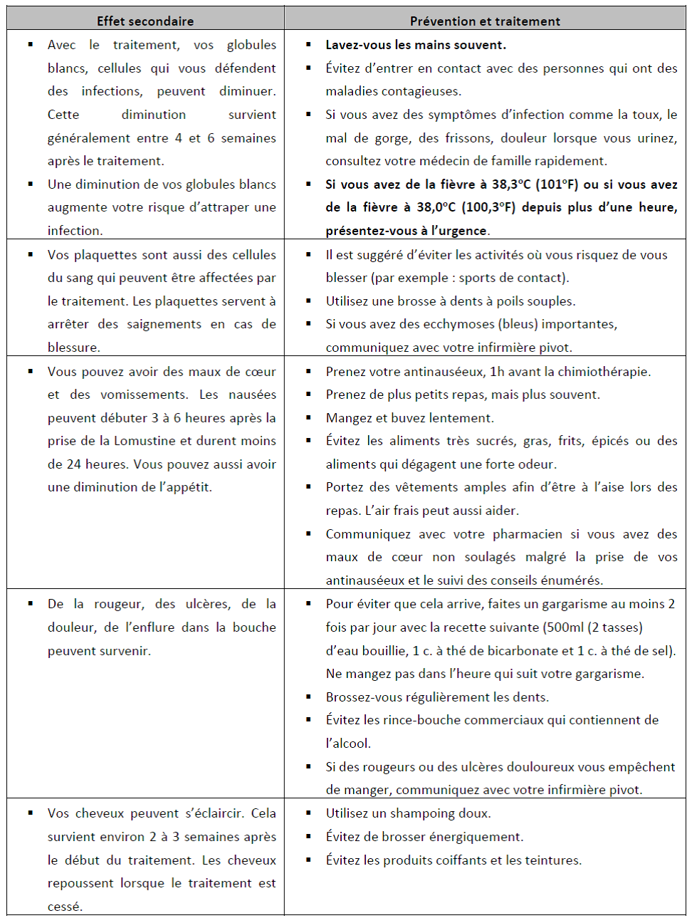 Comme la Lomustine affecte les cellules qui se divisent rapidement, elle affecte aussi certaines cellules saines. Ce sont surtout les cellules du sang et du système digestif.