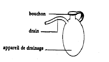 1 ou 2 drains (tube de plastique ou de caoutchouc) dans la région où se trouvait le sein ou l’aisselle. Ce drain permet d’enlever le sang et la lymphe qui s’accumulent lors de la guérison. Votre drain sera retiré par l’infirmière du CLSC selon la prescription de votre chirurgien.