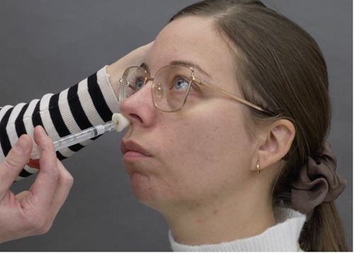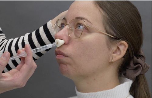 S’il y a beaucoup de sécrétions ou de sang dans le nez, l’essuyer rapidement avant d’injecter le médicament.