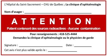 • La mise en place de la plaque d’iode et le retrait sont réalisés à l'hôpital du Saint-Sacrement.