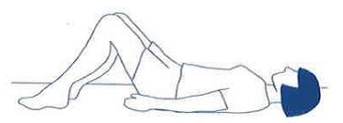 Couché sur le dos, les genoux pliés et les pieds à plat au sol.